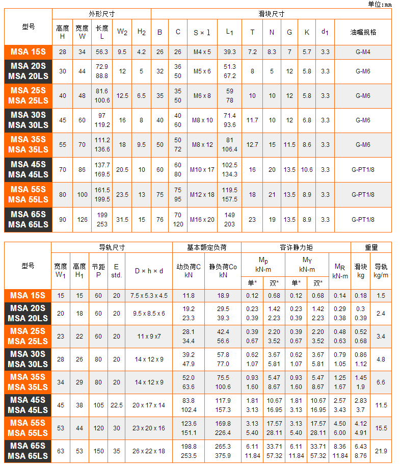 MSA系列直線導(dǎo)軌采用4列圓弧接觸式及45°觸角的 鋼珠列設(shè)計(jì),提供徑向、反徑向及橫方向四方向的相同額定負(fù)荷能力,無(wú)論X、Y、Z等軸的各種安裝方式都可以使用,并且可在維持低摩擦阻力情況下均勻的施以 預(yù)壓,增強(qiáng)四個(gè)受力方向的剛性,特別適合高精度與高負(fù)荷的運(yùn)動(dòng)方式。